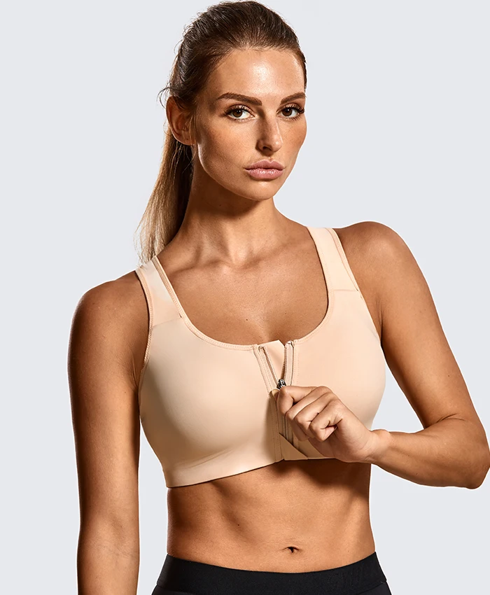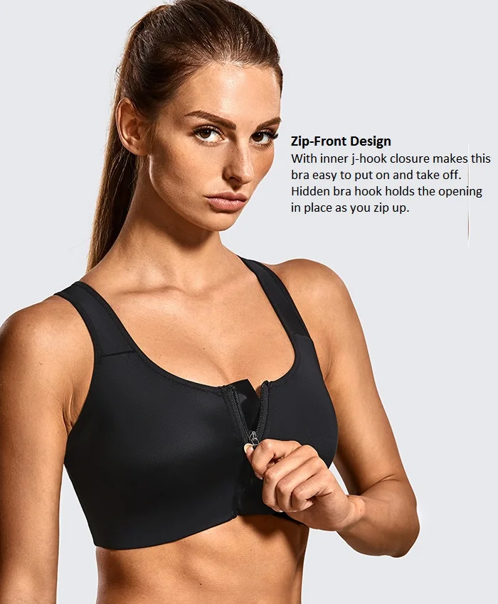 Застежка-молния спереди с внутренней застежкой-крючком облегчает надевание и снятие бюстгальтера.