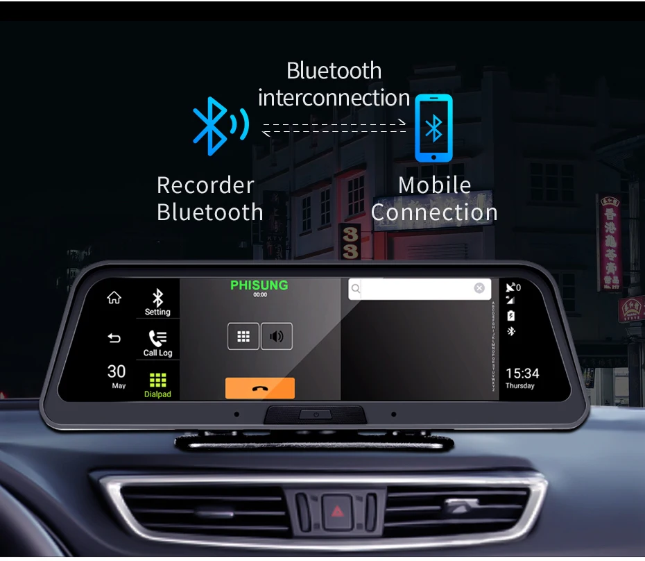 Он встроен в модуль bluetooth, После сопряжения bluetooth с мобильным телефоном, он может поддерживать телефонный звонок на автомобильном видеорегистраторе или передавать Музыкальные песни на Автомобильный видеорегистратор с мобильного телефона.