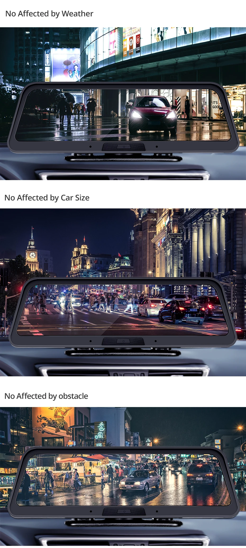 Это устройство поставляется с двумя широкоугольными камерами и может для передней и задней части вашего vehide. Две HD камеры могут одновременно записывать каждый мимолетный момент.