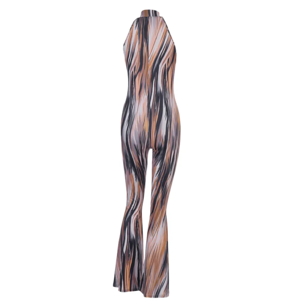 Women O-Neck Solid Color Long Sleeve Halter Strapless Casual Jumpsuit