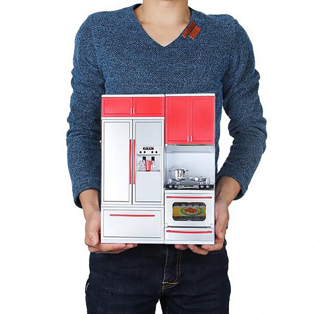 New Red Mini Kitchen Pretend Play Cooking Set Simulation Cabinet Stove Girls Toy Doll House Appliances Cabinet Set