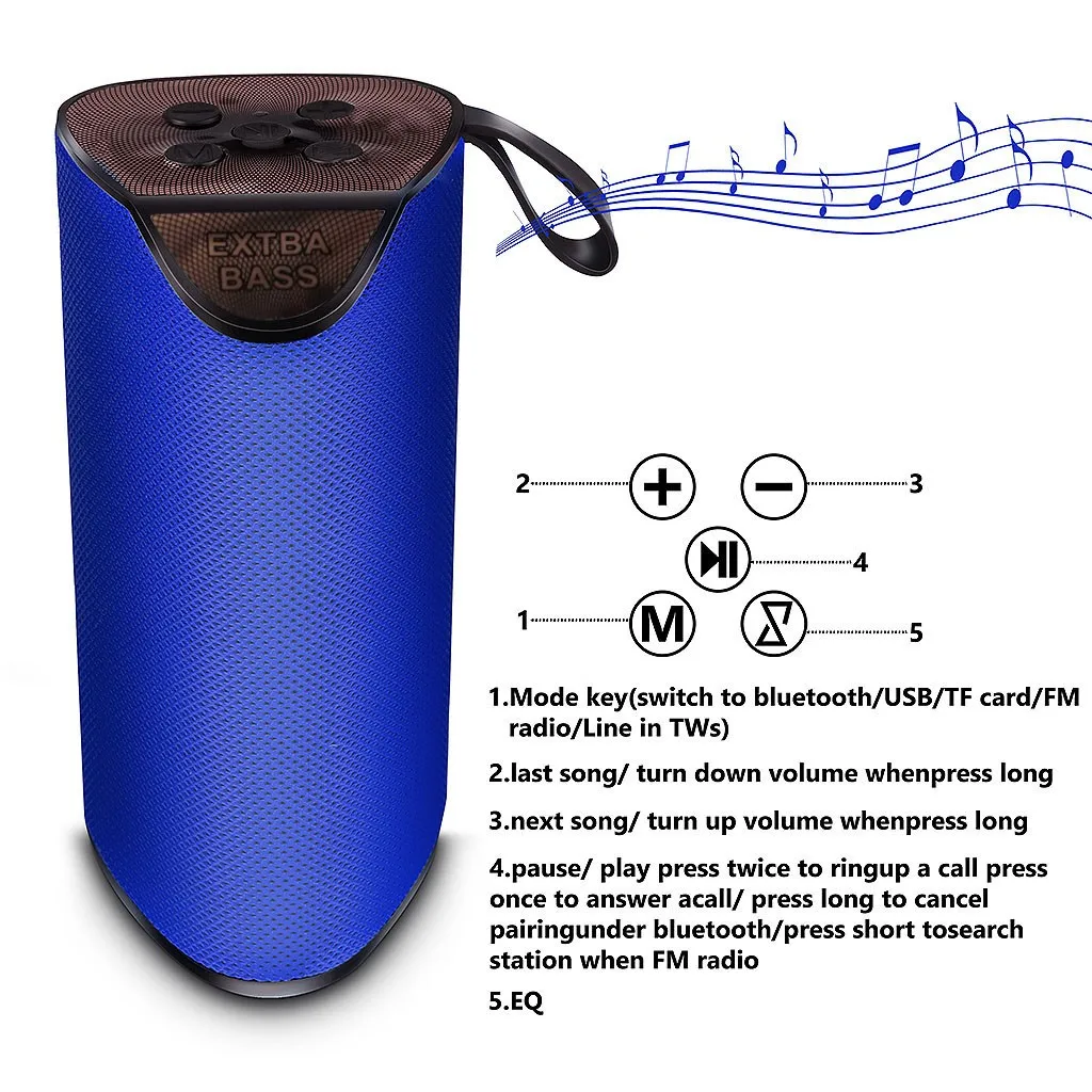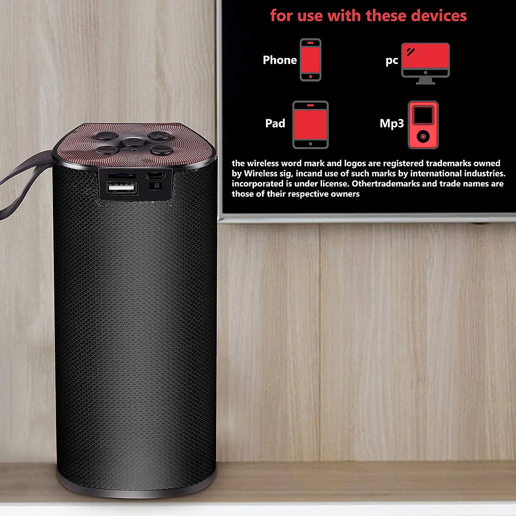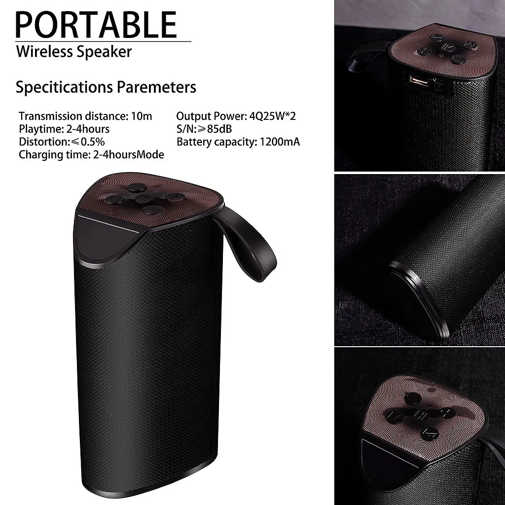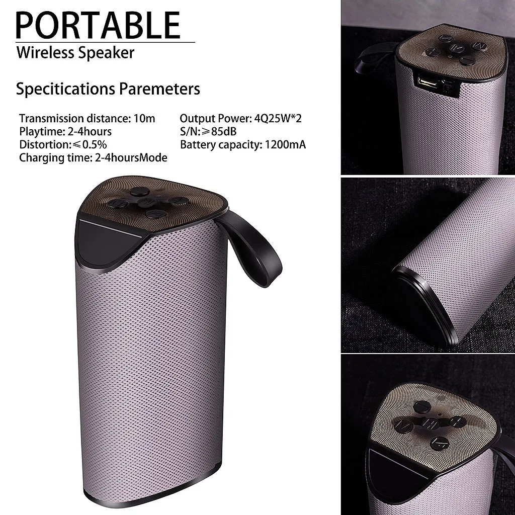 Sup-er-портативная bluetooth-колонка обеспечивает мощный звук и надежные басы с помощью усовершенствованного драйвера 2X5 Вт и пассивного сабвуфера. Поддержка Micro SD обеспечивает бесконечные варианты звука. Использует технологию Bluetooth 4,2 для бесшовного соединения устройств и диапазона 10 м. Простое подключение по Bluetooth работает со всеми устройствами с поддержкой Blueteeth: смартфонами, планшетами, ноутбуками и настольными компьютерами, mp3-плеерами и dvd-плеерами и т. Д.; Работает от внутренней долговечной аккумуляторной литиевой батареи. Со встроенной перезаряжаемой батареей, которая обеспечивает до 2 часов воспроизведения С шумоподавлением Громкая связь вы можете принимать звонки с вашего динамика с помощью кнопки touc-hПараметры: