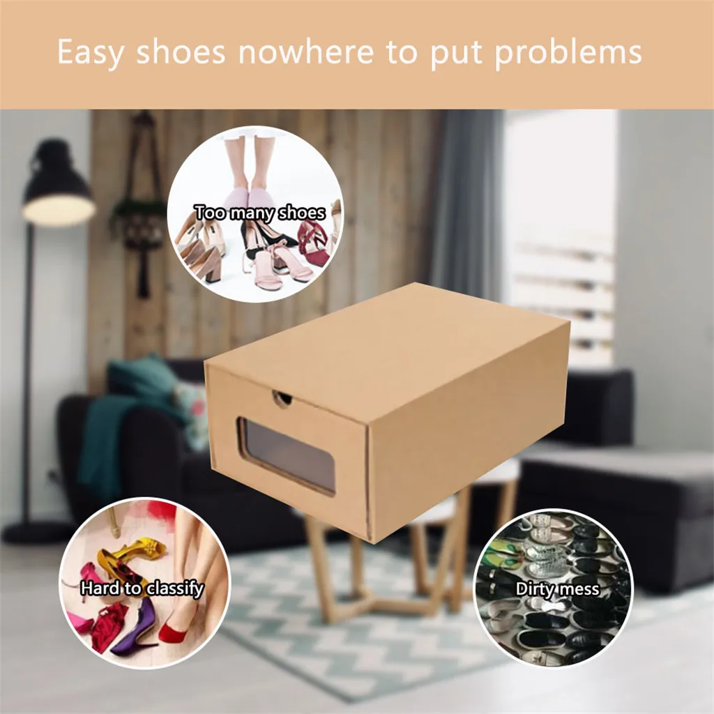 Визуальная утолщенная коробка для обуви с выдвижными ящиками-утолщенный материал из крафт-бумаги, простая установка, рисование, близкий визуальный дизайн, легкое добавление, гигиеническое получение.