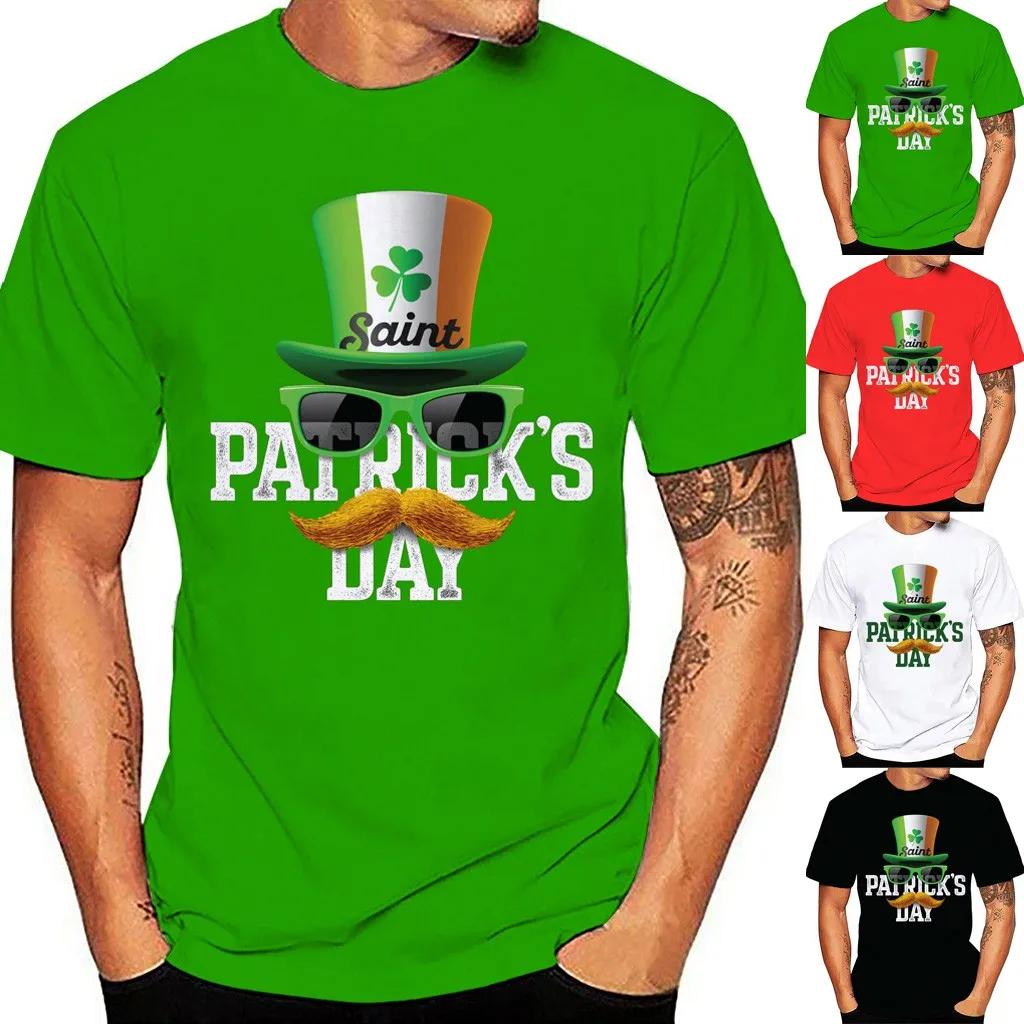 Мужская зеленая футболка с круглым вырезом и коротким рукавом с принтом St Patrick's Day