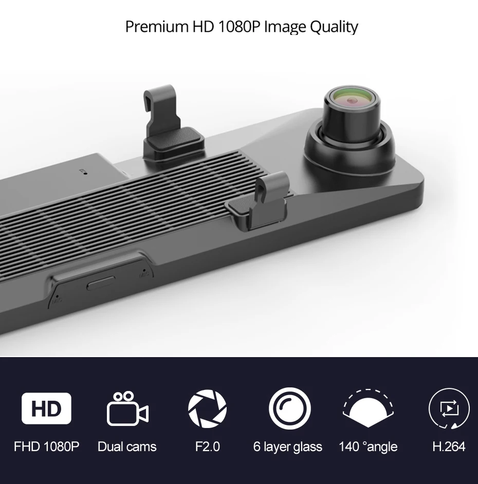 Phisung H58 автоматически переключается на изображение задней камеры на полнозеркальный экран 10 ”, когда автомобиль находится на заднем ходу. Он поставляется с высококачественными изображениями, которые помогают определить важные детали, такие как номерные знаки, действия водителя и дорожные особенности, которые могут подтвердить вашу невинность.