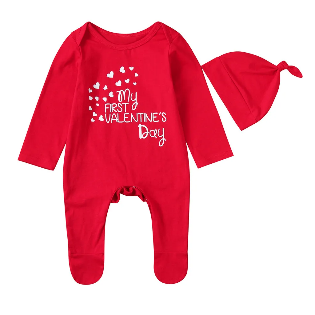 Комбинезон шапка для новорожденных мальчиков и девочек с буквенным принтом на День святого Валентина