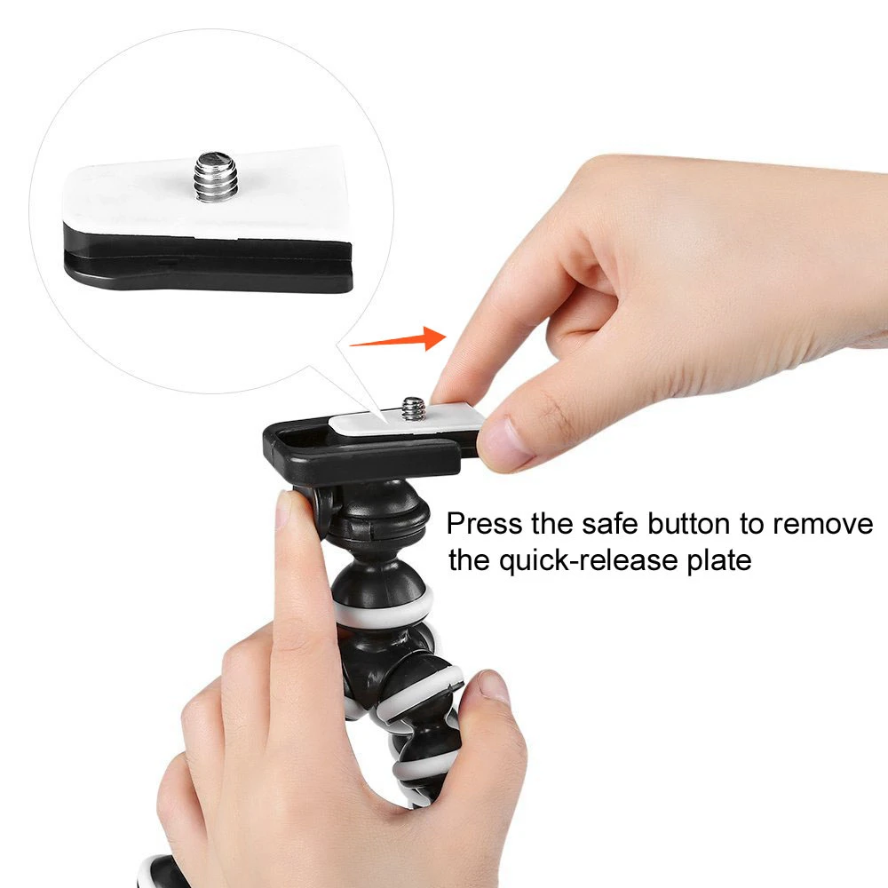 Продукт Особенности: -Улучшите дизайн безопасности, чтобы убедиться, что камера надежно установлена на штативе. -Простое и простое подключение к камере. -Нажмите кнопку, чтобы удалить зажим подключения. -С монеткой будет подключен к зажимному винту и камера затянута. -Конечная папка в штатив. -Гибкое активное подключение. -360 ° свободный изгиб или вращение, может достичь лучшей формы силы. -Кольца и ручки для ног, крепежные кольца и ножки. -Обеспечивает надежное сцепление с любой поверхностью. Технические характеристики изделия: Маленький размер: маленькая камера, размер штатива камеры: 240*60*60 мм Вес: 225 г Например: для iphone 4/4S/5/5S/6/6 Plus, для GALAXY S3/S4/S5/S6/S6 edge, для GALAXY Note2/Note3/Note4, для Xiaomi Redmi, для большинства смартфонов