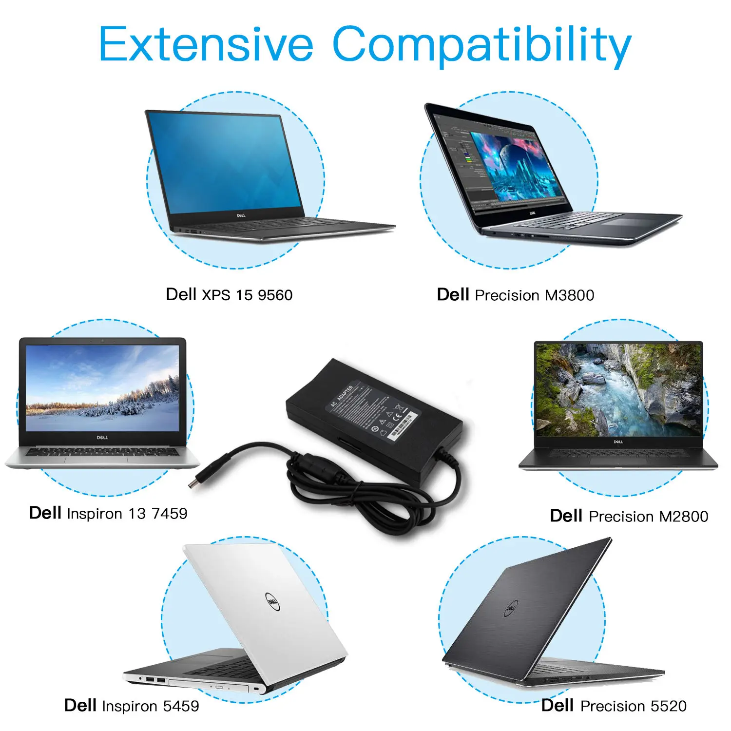 Dell XPS 15 9530, Dell XPS 15 9550, Dell XPS 15 9560, Dell VOSTRO24 5450, Dell Inspiron 5459, Inspiron 13 7347, 7348, 7459, Dell Precision 5520, Precision Mobile Workstation 5510, dell Precision M2800, M3800 P/N: 7CWK7, 662JT, DA130PM130, HA130PM130, 6TTY6, 0RN7NW, 0V363H, 332-1892, ADP-130EB BA