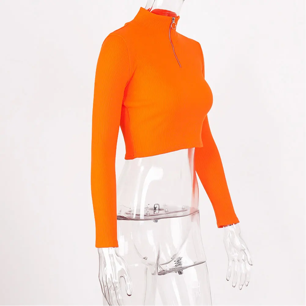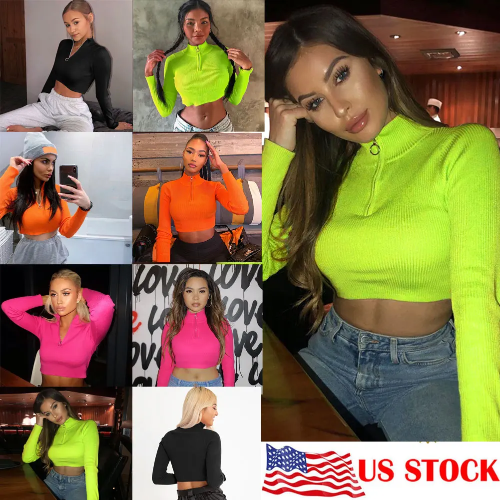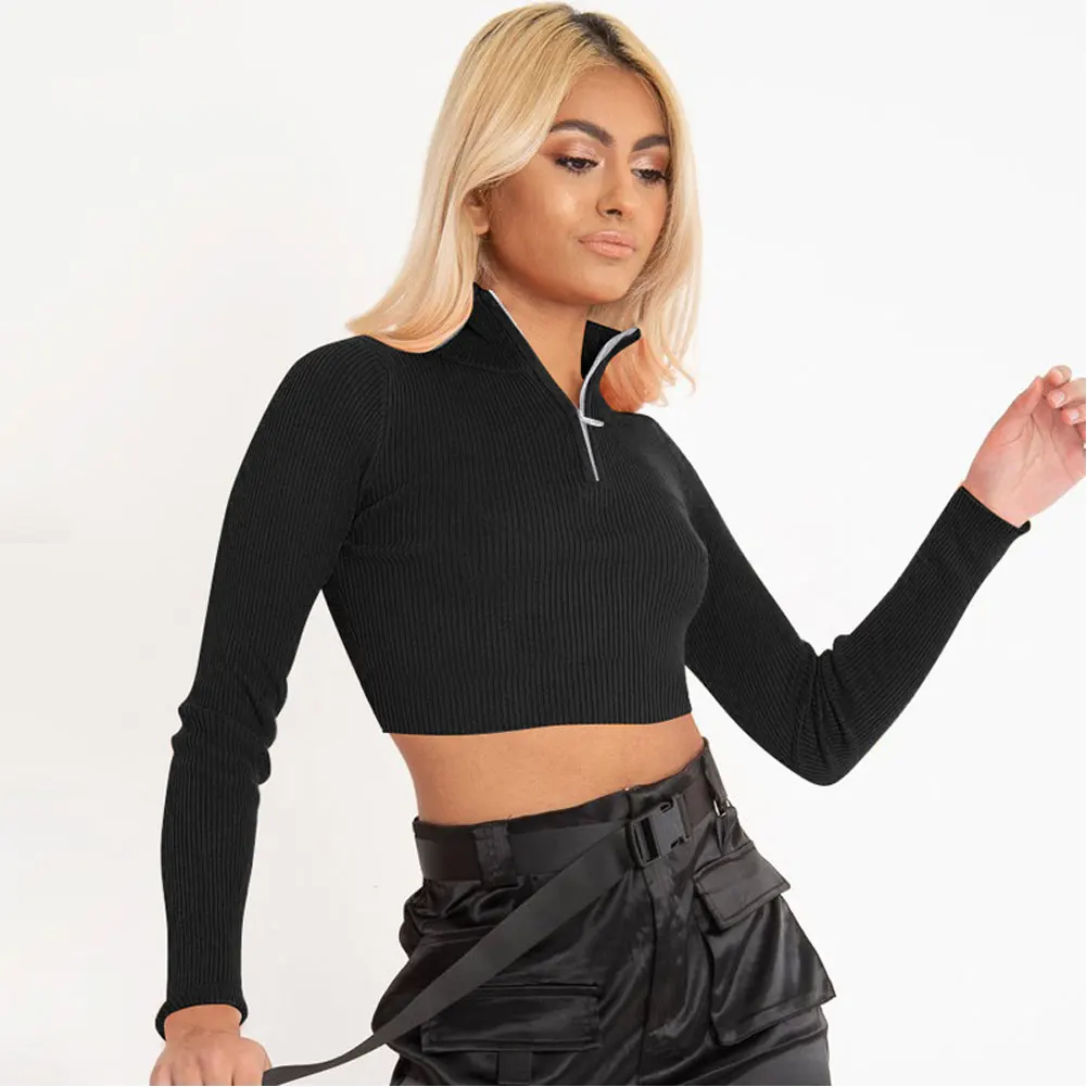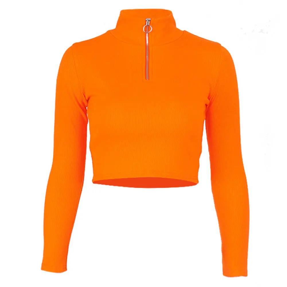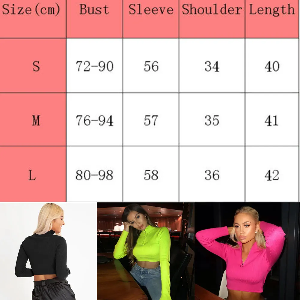 Women's Zipper Cropped Navel Long Sleeve Blouse Solid Color Sexy Slim Top Material: Polyester Color: As Pic Style: Sexy, Comfy Size: S,M,LSize Chart: