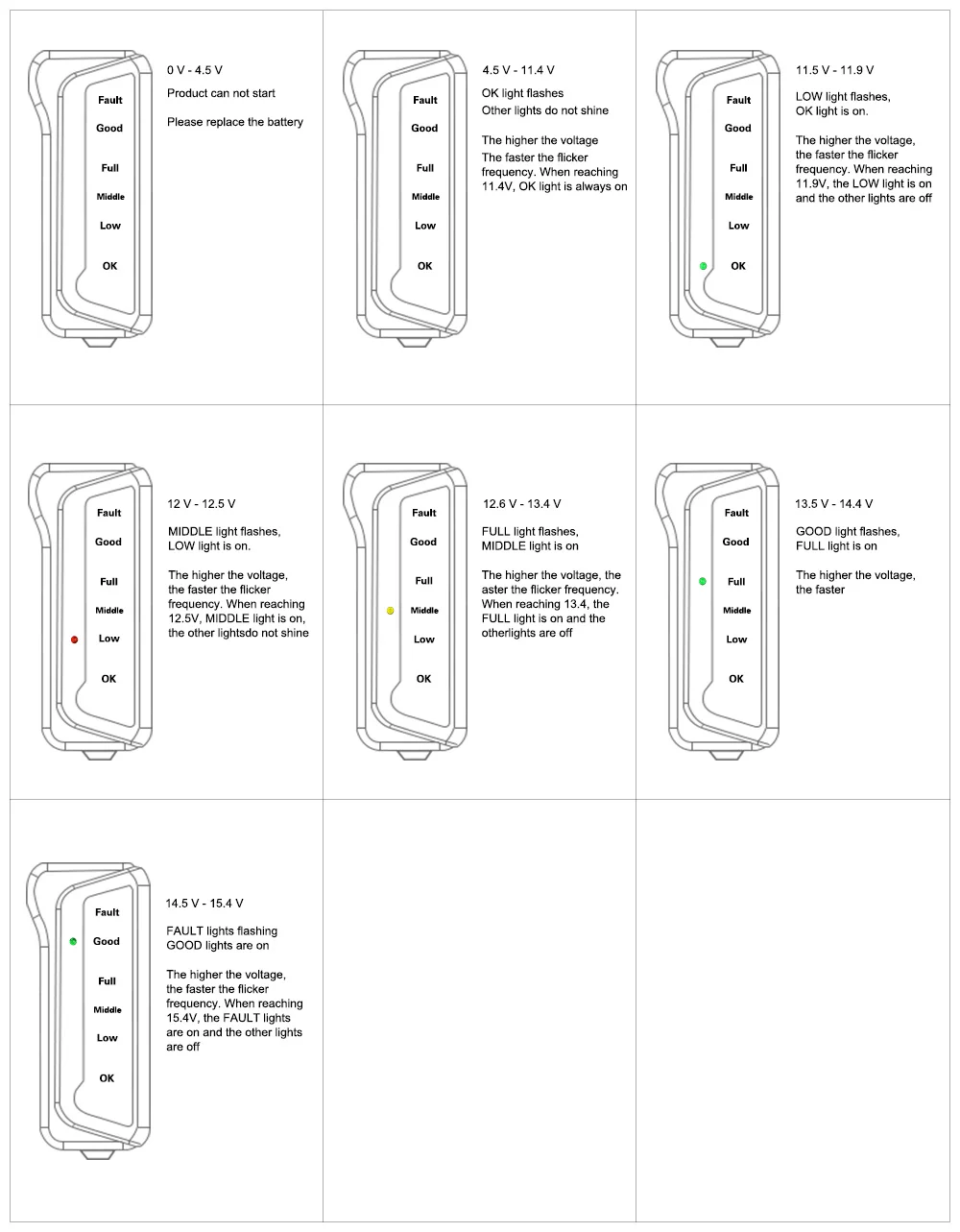 Проверка состояния генератора. Проверка состояния батареи. Дисплей перегрузки батареи. 6-светодиодный дисплей, ярко представить генератора и состояния батареи. Два зажимы для тестирования для безопасной и легкой эксплуатации. Небольшой размер и вес светильник, удобно носить с собой. Подходит для автомобилей, мотоциклов и т. д. Подходит для 12 В свинцово-кислотных батарей, твердых батарей, разрядных батарей и батарей без технического обслуживания тяжелых изолированных хомутов. Легко и безопасно в использовании, без искры. С хорошим чипом внутри, не легко получить горячее на поверхности. 6 светодиодный ламп: Проверка состояния генератора: Первый светильник (красный): неисправность Второй светильник (зеленый): хороший Третий светильник (зеленый): полный Проверка состояния батареи: Первый светильник (желтый): красный Второй светильник (красный): низкий Третий светильник (зеленый): ок Спецификация: Количество СВЕТОДИОДНЫЙ: 6 (2 красных, 3 зеленых и 1 желтых) Материал провода: 0,06 квадратных миллиметров меди Макс. Напряжение и ток: 12 В 15A Длина провода: 25 см/9,84 дюйма Размер тестера батареи: 12*5,2*1,8 см/4,7*2 * 0.7in Характеристики: портативный Функции: повышение безопасности вождения Материал: пластик, медь Цвет: серыйПосылка: 1x12 в цифровой тестер генератора батареи
