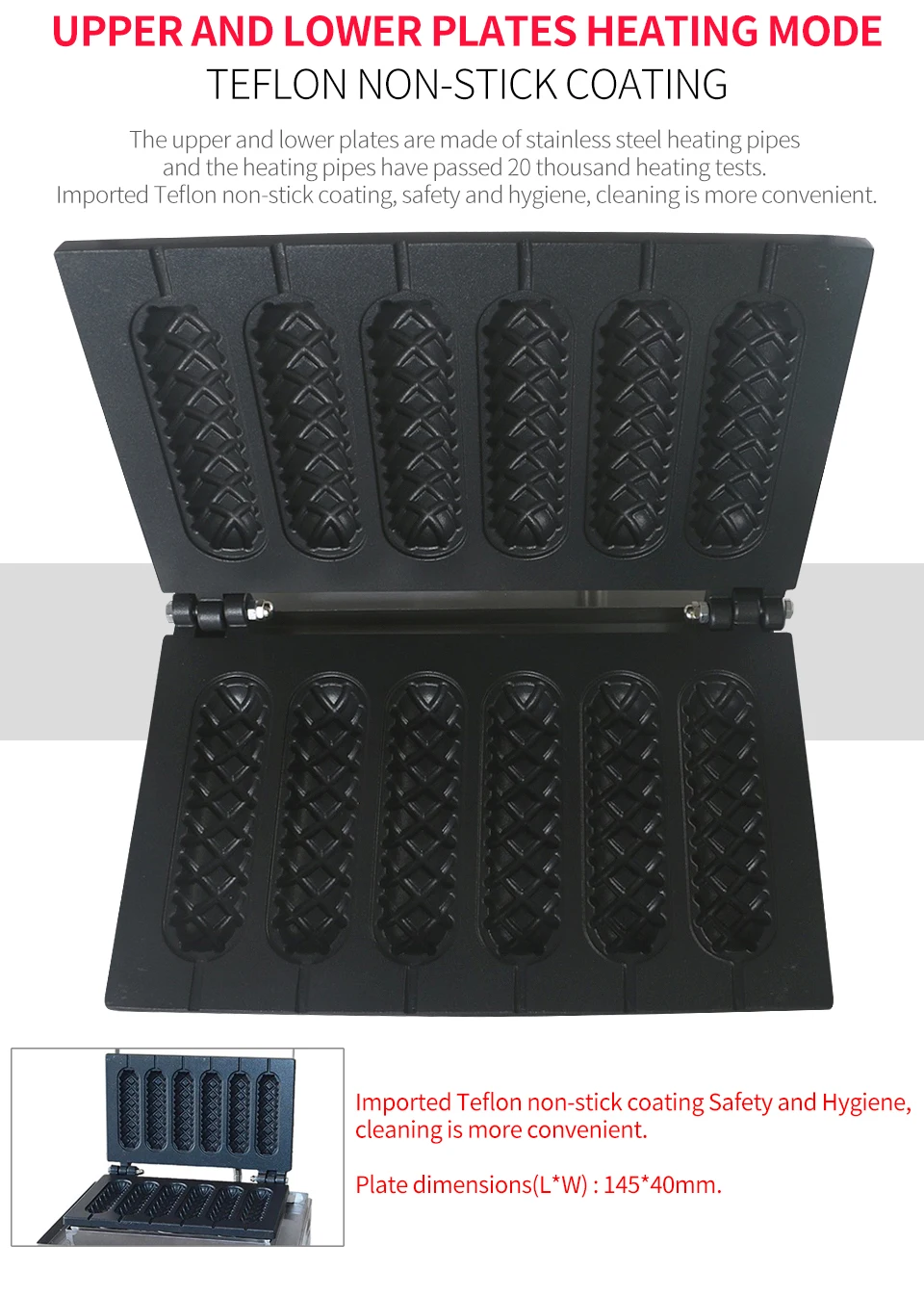Professional машина вафли Материал Polytetrafluoroethylene (PTFE) обычно называется "антипригарное покрытие" или "легкоочищаемый материал". Этот материал имеет характеристики кислотной стойкости, щелочной стойкости и стойкости к различным органическим растворителям, и нерастворим практически во всех растворителях. В то же время, polytetrafluoroethylene (PTFE) имеет характеристики высокотемпературного сопротивления, его коэффициент трения очень низкий, поэтому его можно использовать в качестве смазки, но также станет идеальным покрытием для легкой очистки внутреннего слоя водопроводных труб.