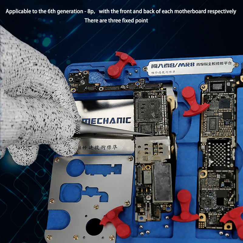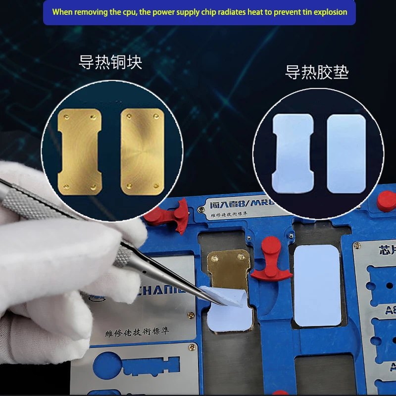 1. Крепление материнской платы, cpu NAND PCIE клей для удаления, ремонт отпечатков пальцев fxture многофункциональный в одном 2. Использует теплопроводность чистой меди для предотвращения оловянного взрыва на задней панели IC материнской платы сотового телефона, применяется теплопроводность. Наклейка на задней панели IC на материнской плате, чтобы предотвратить попадание металла непосредственно на IC и привести к повреждению IC, Чистый медный тепловой блок проводимости не напрямую контактирует с основной платой 3. Платформа для ремонта печатных плат добавила структуру позиционирования ЦП. Ручное позиционирование не требуется, улучшите скорость успеха. 4. Платформа для ремонта печатных плат, разработанная с интегрированной функцией посадки олова. Прецизионные трафареты производятся по ведущей в мире лазерной технологии. 5. Платформа для ремонта печатной платы добавила разделительный слой материнской платы и структуру установки позиционирования. 6. Разработанный С прецизионной позиционирующей колонкой, он сделает эффективный ремонт для разделения, пайки и установки. 7. Чистый медный материал теплопроводности проходит специальный процесс, так что цвет поверхности будет держать новый. 8. Точная защелкивающаяся конструкция, не повредит материнскую плату