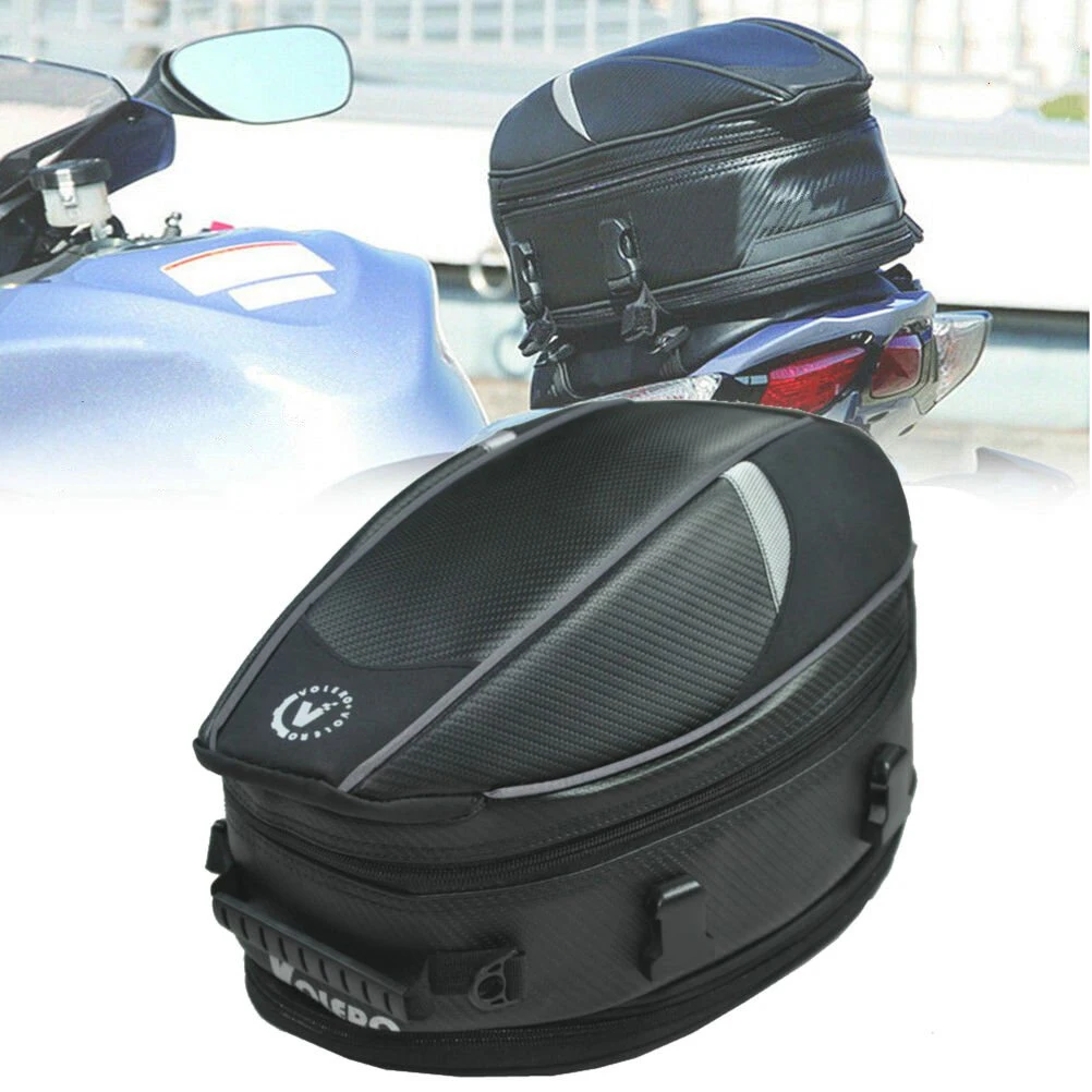 Изготовлен из высококачественного прочного материала из искусственной кожи, водостойкий, может использоваться в дождливую погоду Размер: стандартный размер: 13,8 "x 9,5" x 8,3 ", и размер расширения: 13,8" x 9,5 "x 11"; 11,5 литров/18,5 литров расширен, вес: 0,9 кг/2LBS Простая установка: подтяните сумку на заднее сиденье к подушке вашего велосипеда двумя полосками, затяните ее, закрепите с 4 пряжками Подходит для большинства мотоциклов, Dirtbike,Dual Sport и Enduro, можно использовать в качестве сумочки или сумки на плечо Хороший товар для хранения шлема, кошелька, телефона, камеры, сигарет с энергетическими напитками и т. д. расширяемая нижняя секция для увеличения места для хранения. Это также украшение для вашего мотоцикла с современным дизайном