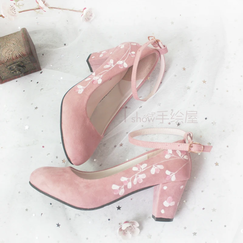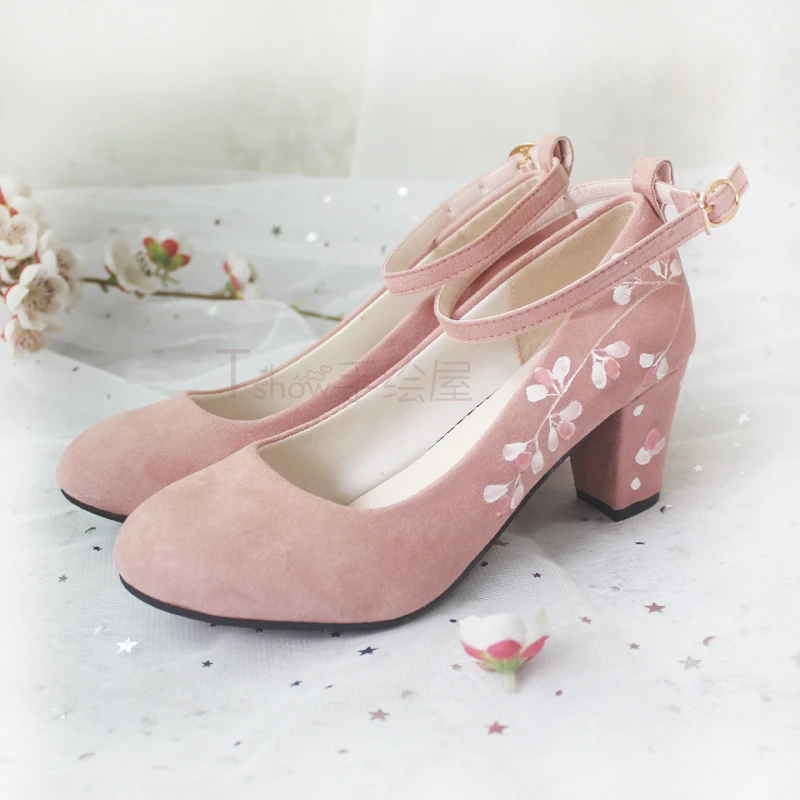 Женские туфли в стиле ретро в китайском стиле Hanfu cheongsam на толстом высоком каблуке с пряжкой и круглым носком, женские туфли на толстом каблуке, cos