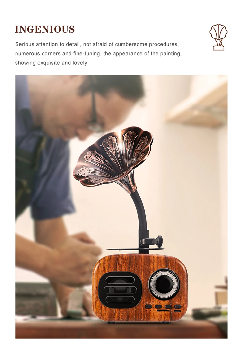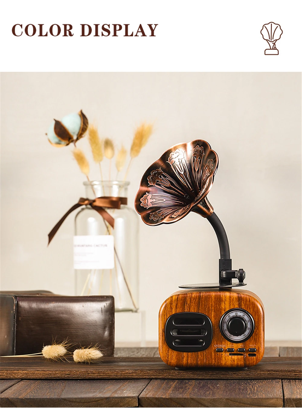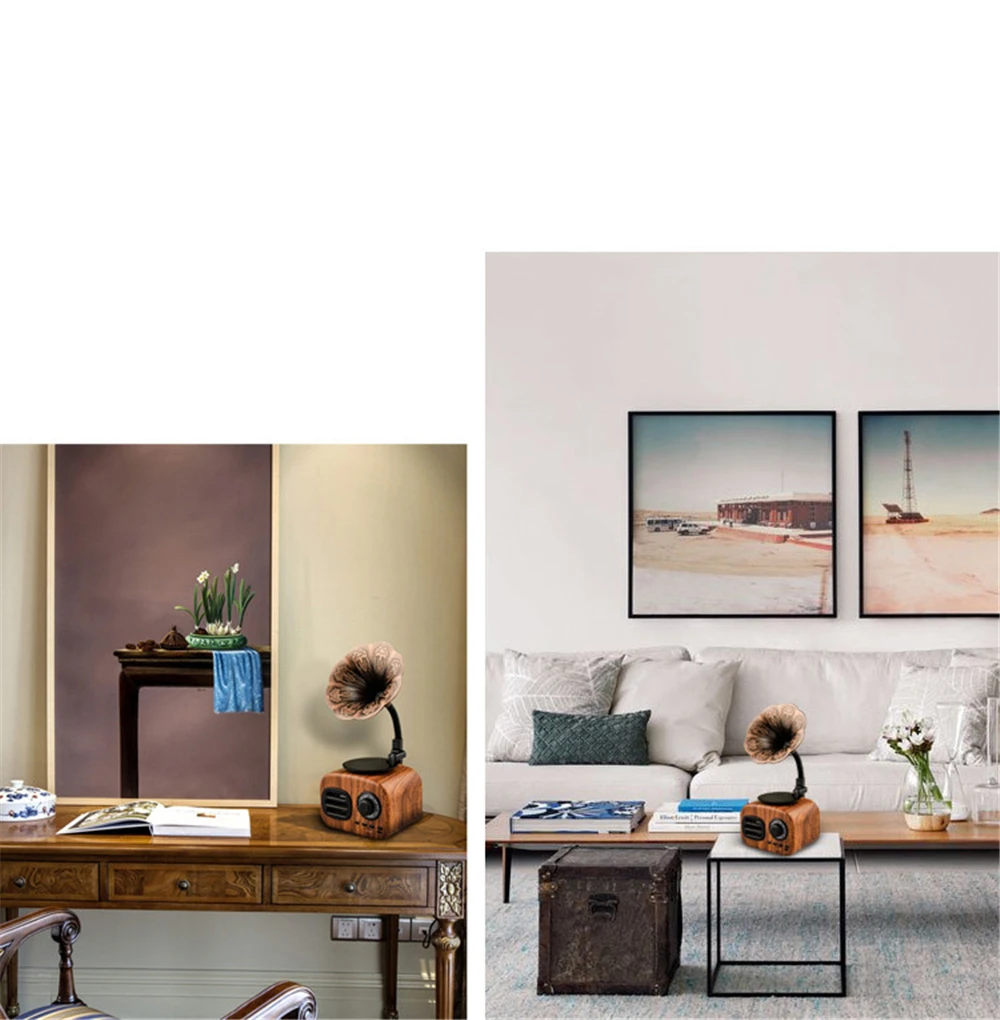 Деревянный Ретро фонограф беспроводной громкой связи FM радио Мини громкоговоритель Бумбокс сабвуфер Bluetooth колонки Caixa De Som Altavo
