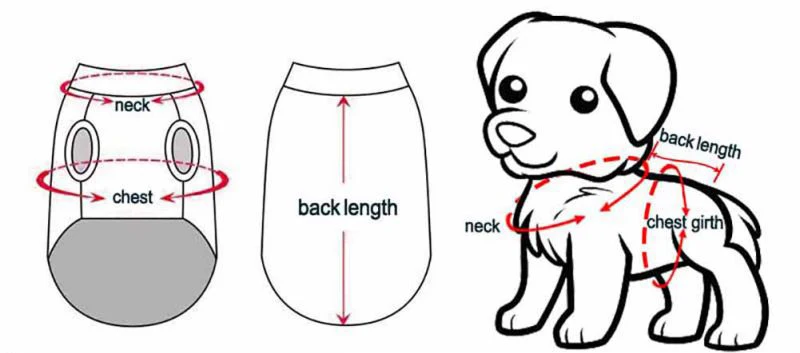 Размеры S тела Длина 23-27 см, обхват груди; большие размеры 36-40 см шея 23-27 см