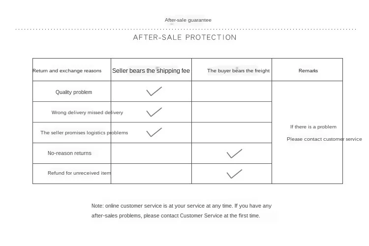 Если после получения товара нет на складе или проблем с качеством, пожалуйста, свяжитесь со службой поддержки клиентов в течение трех дней, есть проблема с качеством, пожалуйста, получите товар вовремя, чтобы сделать фотографии и отправить обратно в службу поддержки клиентов.