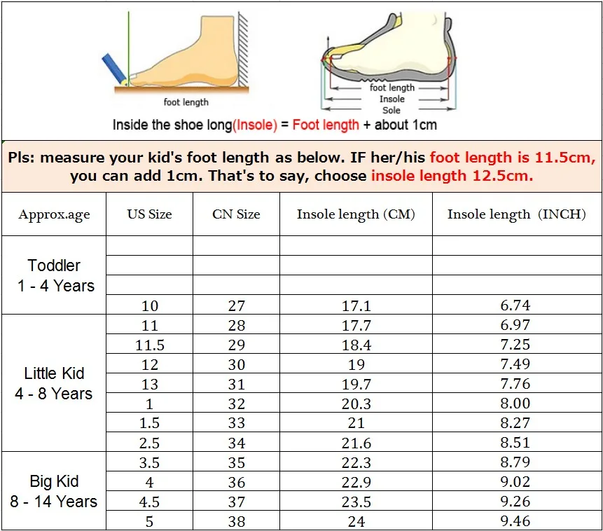 2..Что касается размера, Измерьте длину стопы ребенка в см или дюймах + 1 см или 0,03937 дюймаChВыберите соответствующий американский размер, спасибо.