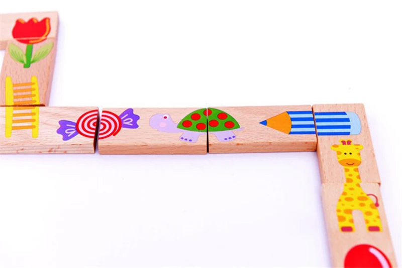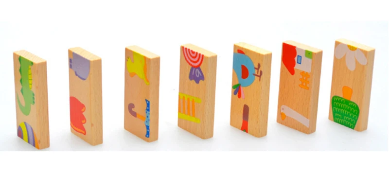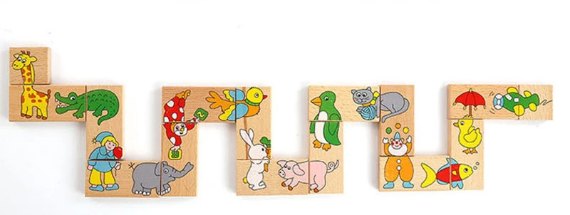 Деревянная детская игрушка домино распознавание животных Дети Обучающие строительные блоки игрушки Настольные игры сложенные развивающие игрушки