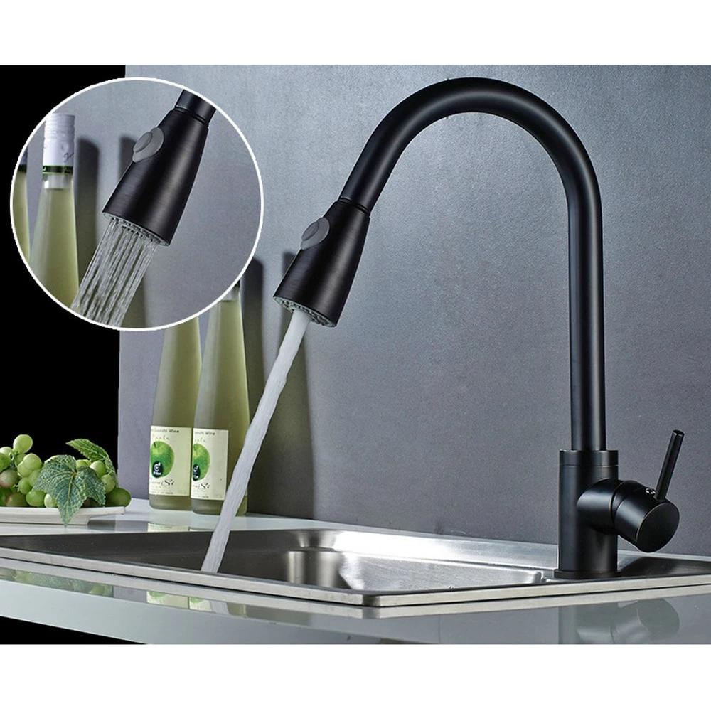 High Pressure Kitchen Faucet Single Handle Faucet with Granite Black Mounted Mixer Tap 360 Degree Rotation Stream Sprayer Nozzle
