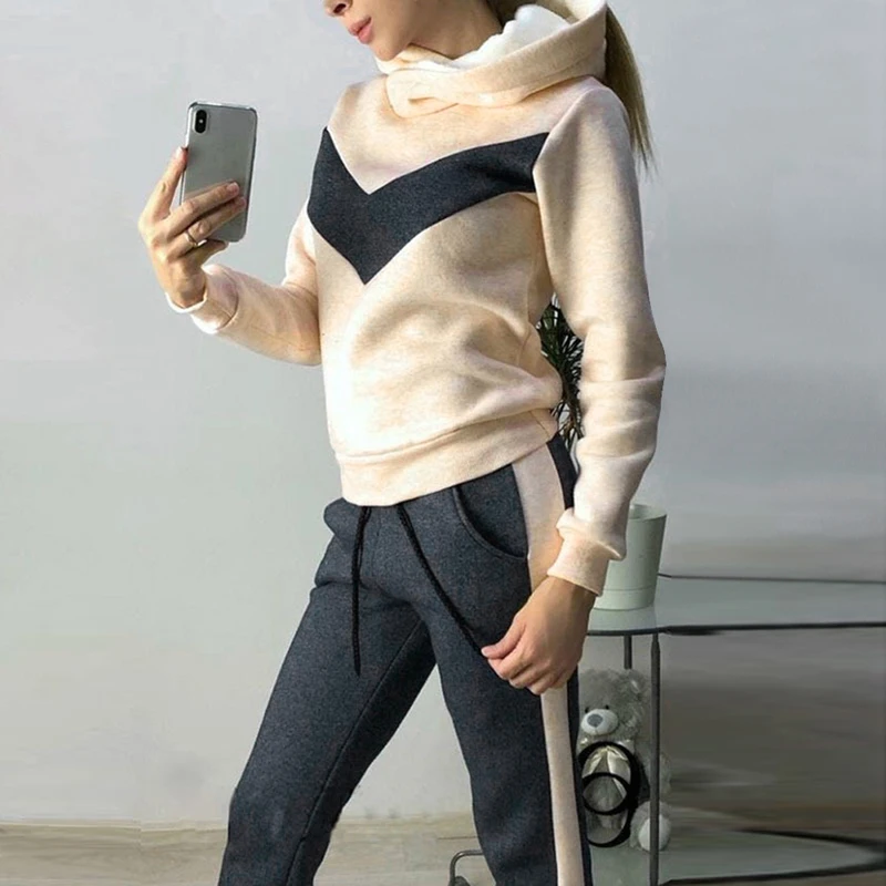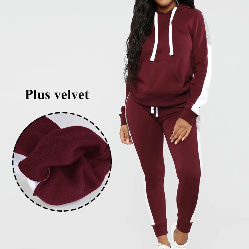 CALOFE женский модный однотонный спортивный костюм, спортивные толстовки с длинными рукавами, флисовые джоггеры, комплект из 2 предметов для бега, тренировочный костюм на осень 2019