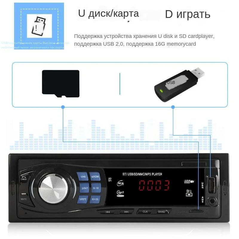 1Din автомобильный Радио Bluetooth Авто Стерео MP3-Плеер с дистанционным управлением DC 12V FM USB AUX Входная функция Автомобильный In-dash