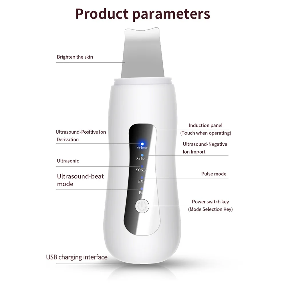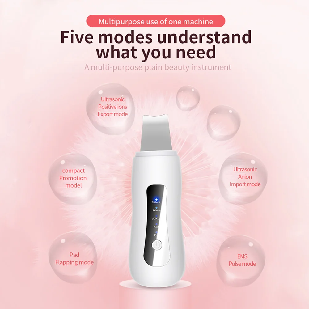 5 в 1 профессиональный ультразвуковой скребок для кожи лица Ион глубокое очищение лица пилинг шпатель перезаряжаемый прибор для ухода за кожей