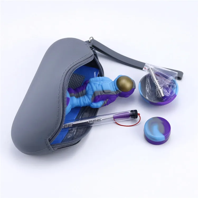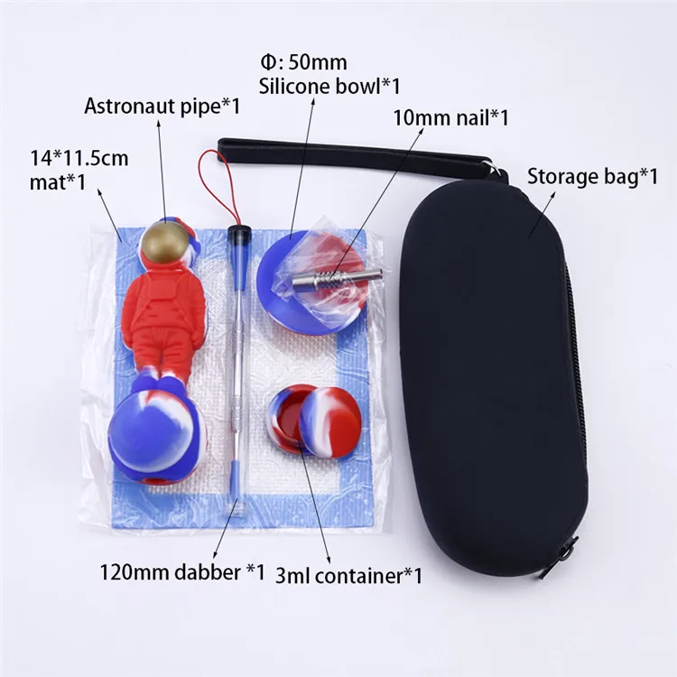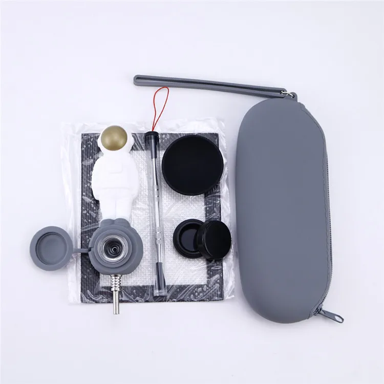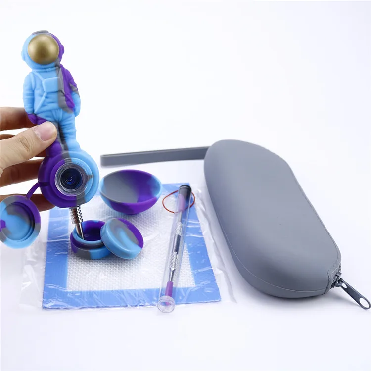 Набор в форме курительной трубы космонавта с силиконовым ковриком, баночкой, чашей, титановым силиконовым гвоздиком для табака, Небьющийся инструмент для трубок