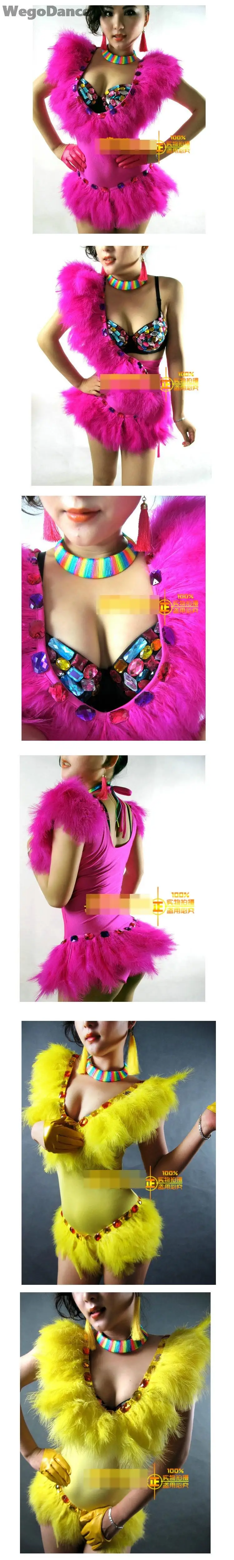 Новинка, женский разноцветный боди со стразами и перьями, женский костюм, подиум для моделей, сценический наряд, одежда для бара, вечеринки, шоу, танцев