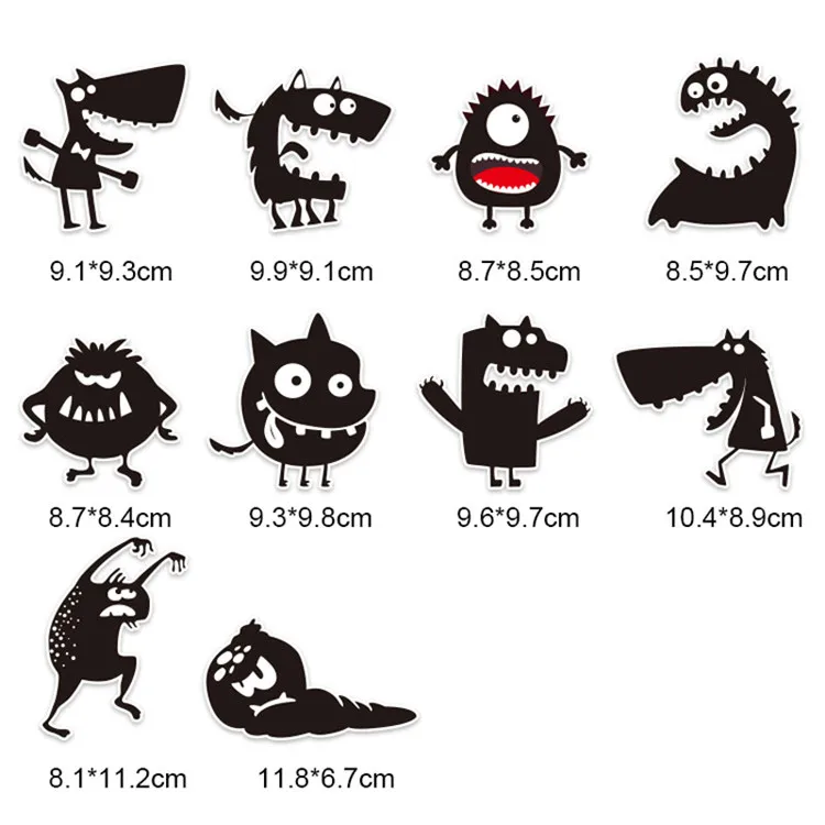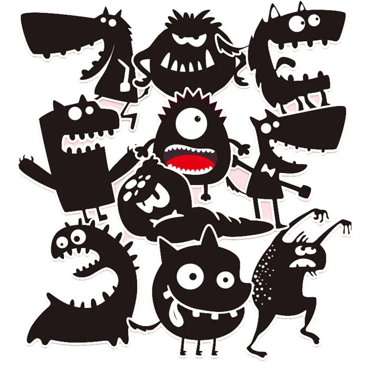 10 шт./партия (лот) мультяшный водонепроницаемый ПВХ наборы наклеек маленький черный наклейка монстра ноутбук Кувшин Бутылка багаж дневник наклейка