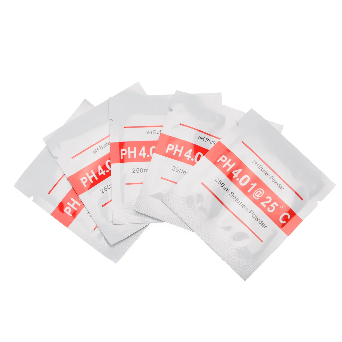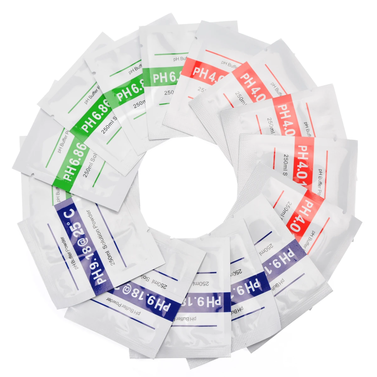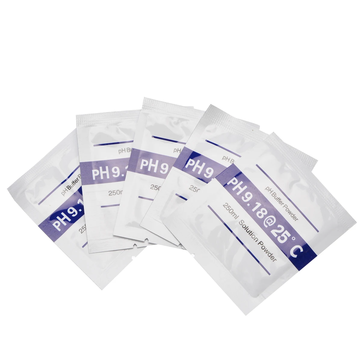 В комплект входит 5 посылка 4,01, 5 посылка 6,86 и 5 посылка 9,18 порошка для калибровки раствора для всех pH потребностей.