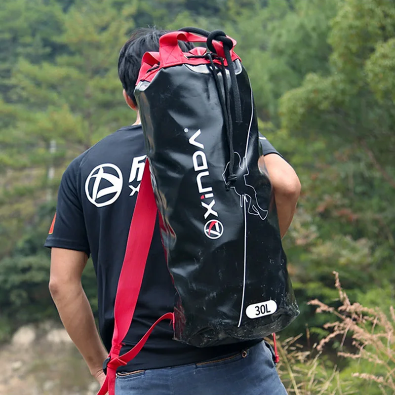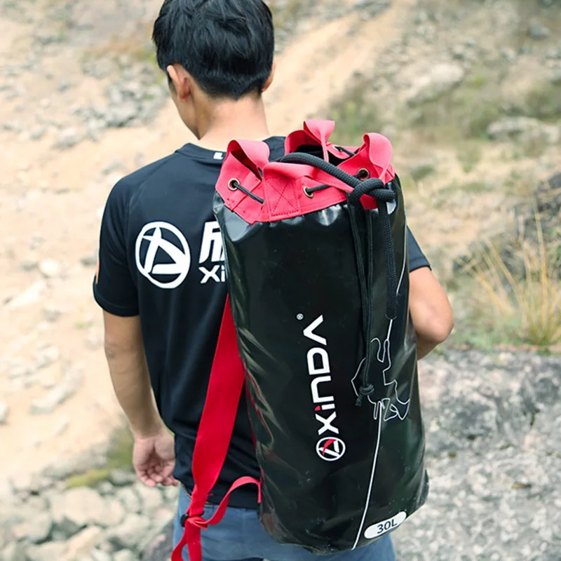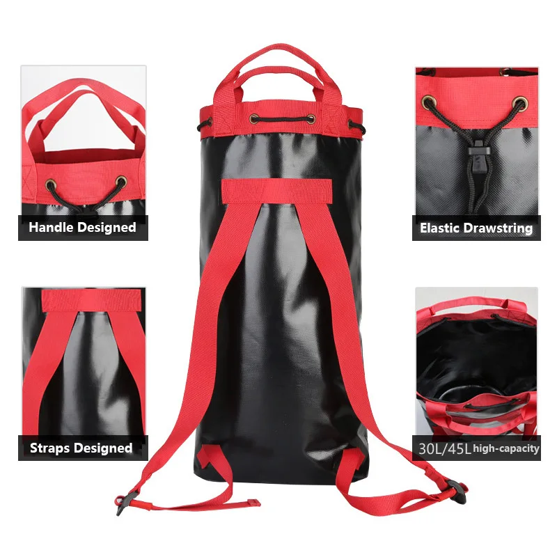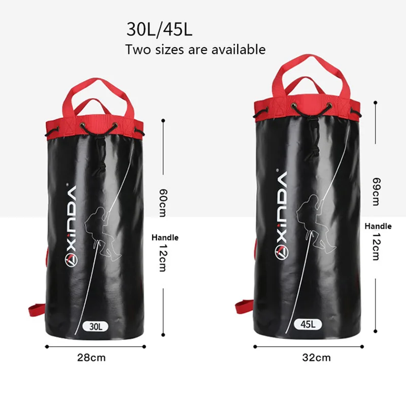 Скалолазание мешки с веревкой, уличная сумка для хранения на канатах для скалолазания, наплечный ремень, аксессуары для спуска, Портативный Регулируемый рюкзак Наименование посылка упаковка оборудования Процесс: высокочастотное горячее прессование Спецификация: 30 л/45 л Ткань: сетка из ПВХ 1000 D Цвет: черный Вес: 45 л: 0,71 кг/30 л: 0,56 кг Сфера применения: оборудование для хранения веревок для пеших прогулок, альпинизма, спуска под давлением и других видов спорта