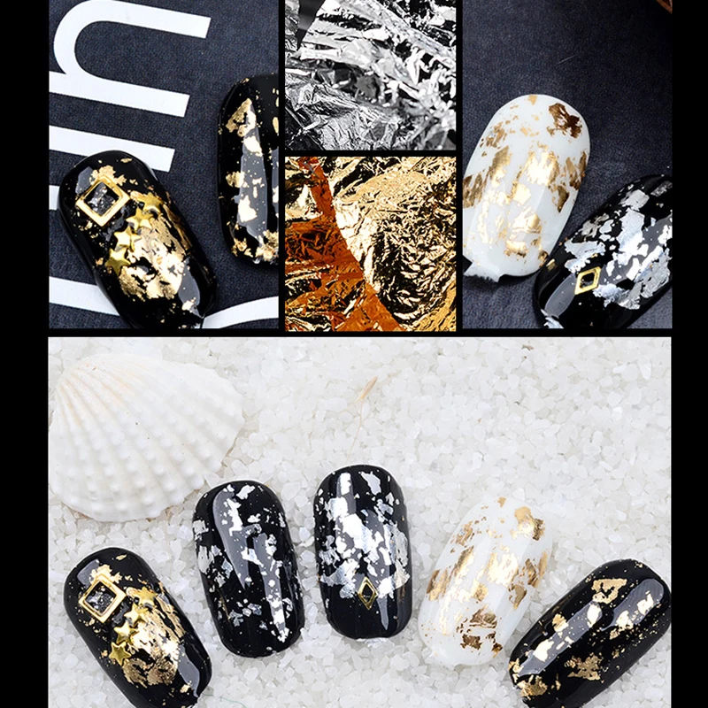 Золотые наклейки для ногтей, серебряные блестки, чешуйчатый чип, фольга, сделай сам, акриловый УФ-гель, пейджер, легко наносится на натуральные или искусственные ногти