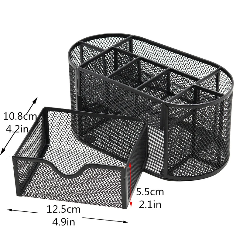 Многофункциональный настольный металлический ящик для хранения 9 компонентов (черный) Прочная конструкция. Промышленный вид. Цвет: черный Размер: 220*110*110 мм В посылка включает в себя: 1 x футляр для ручек