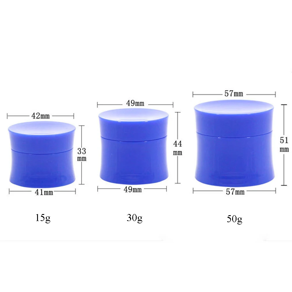Material: plastic Color: black, white, blue Dimensions: as shown in the figure Specification: 15g, 30g, 50g Package include : 1 pc Bottle Note: Please allow a little size error due to manual measurement.