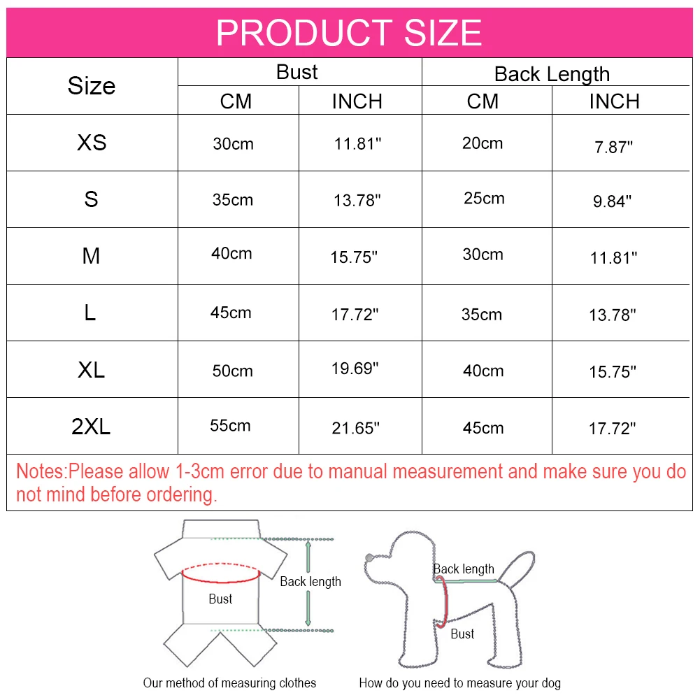 XS: обхват груди 30 см/11,81 дюйма, длина спины 20 см/7,87 дюйма