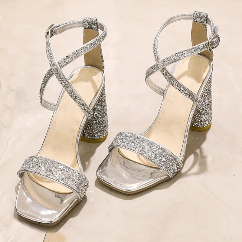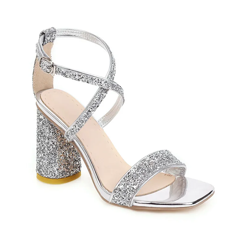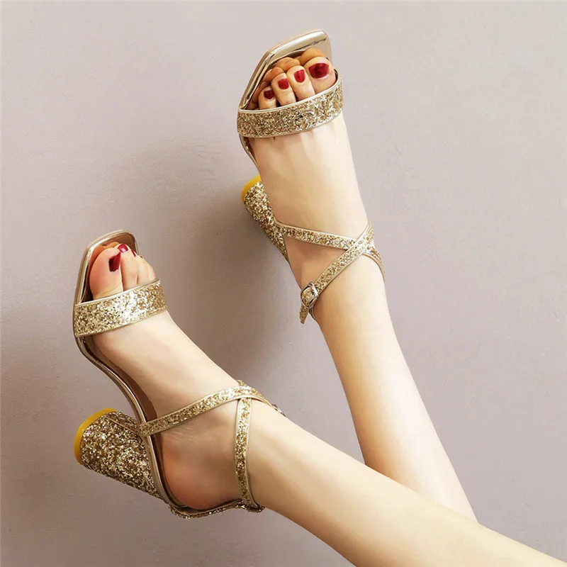 Наименование товара: босоножки на высоком каблуке с открытым носком и блестками