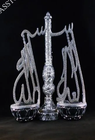 Серебряный цвет имя Аллы и Мохаммада весы дизайн Исламская скульптура Размер: 27x30 см Кристальный камень с покрытием Производство предотвращает затемнение от солнечного света Изготовлено из прессованного мраморного порошка и полиэстера Лучшее качество
