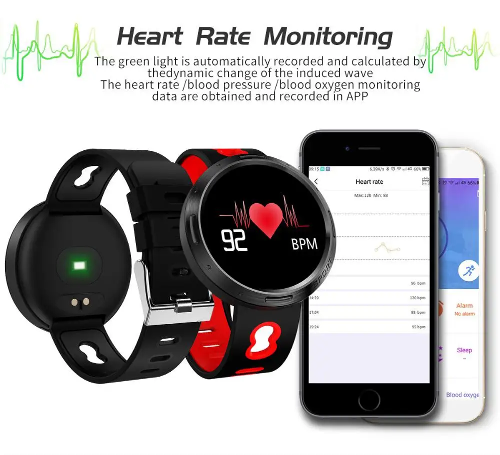 Функция: мониторинг сердечного ритма, Сфигмоманометр, мониторинг сна, несколько режимов транспортировки, шагомер, напоминание о звонках или сообщениях, отклонение звонка, будильник, календарь, напоминание о сидячем положении, дистанционное управление камерой, защита от потери