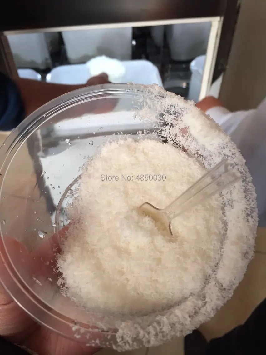 1. Сверхтонкая Снежная машина производит чистые снежинки в течение 5 минут с помощью любой жидкости. 2. Супер хороший снег-это машина, которая производит лучшие и чистые снежинки, которые идеально подходят для приготовления различных холодных десертов. Это в отличие от любых других машин, которые производят очень мягкие и гладкие снежинки. 3. Потому что это улучшит вкус потрясающих снежных десертов. Очень хороший снег может быть помещен практически везде, потому что он требует очень мало места, в то время как рестораны, больницы, пляжные стороны, кофейня и особенно франшизные рестораны. 4. Он очень популярен там, где многие клиенты вынимают, и он удовлетворяет клиентов, производя альтернативные виды меню, такие как натуральные фруктовые соки, Снежная слякоть и сладкие бобы со снегом. Сверхтонкая машина для снежного льда-это продукт, который может быть просто использован любыми покупателями. То есть, это намного проще, чем у других бритв со льдом, потому что она работает в системах автоматического управления. Например, просто подключите шланг, который поставляется водой или любой жидкостью к машине. 5. Через 5 минут будет произведен Снежный лед. Если машины полностью заснежены, машина перестанет производить снег самостоятельно.