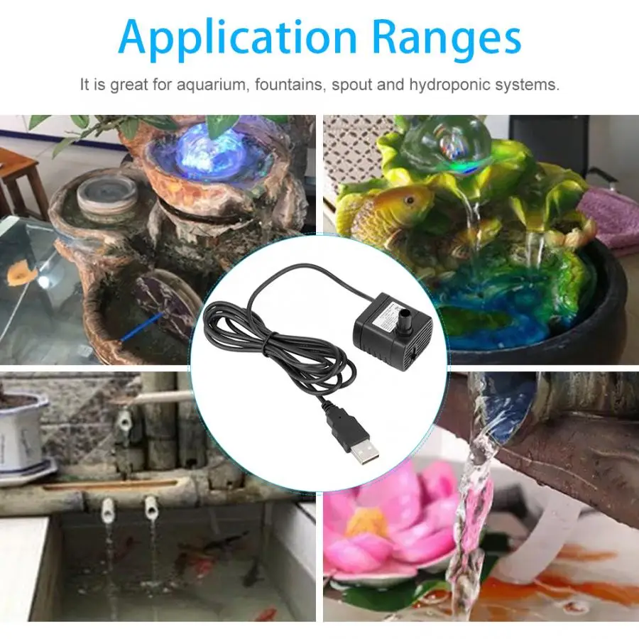 USB 5V 0,5 m 150L/H Регулируемый миниатюрный бесщеточный двигатель DC водяной насос для гидропоники, погружной насос для бассейна, водяной насос