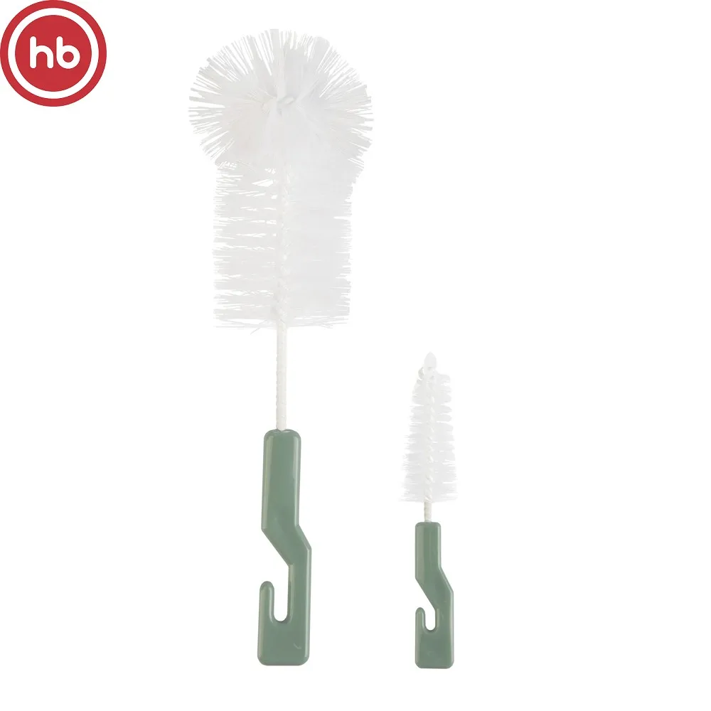 В набор входят два ёршика, чтобы безопасно и без царапин очищать бутылочки для кормления (большой ёршик) и соски (маленький ёршик). Ручки ёршиков снабжены крючками для удобства подвешивания.