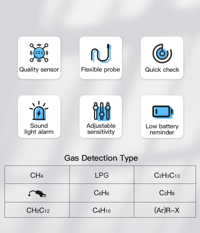 1. Измерьте следующий газ: метан, природный газ, бензин, спирт, пропан, бензол, трихлорэтан, Этан, n-бутан, галогенированный углеводород.