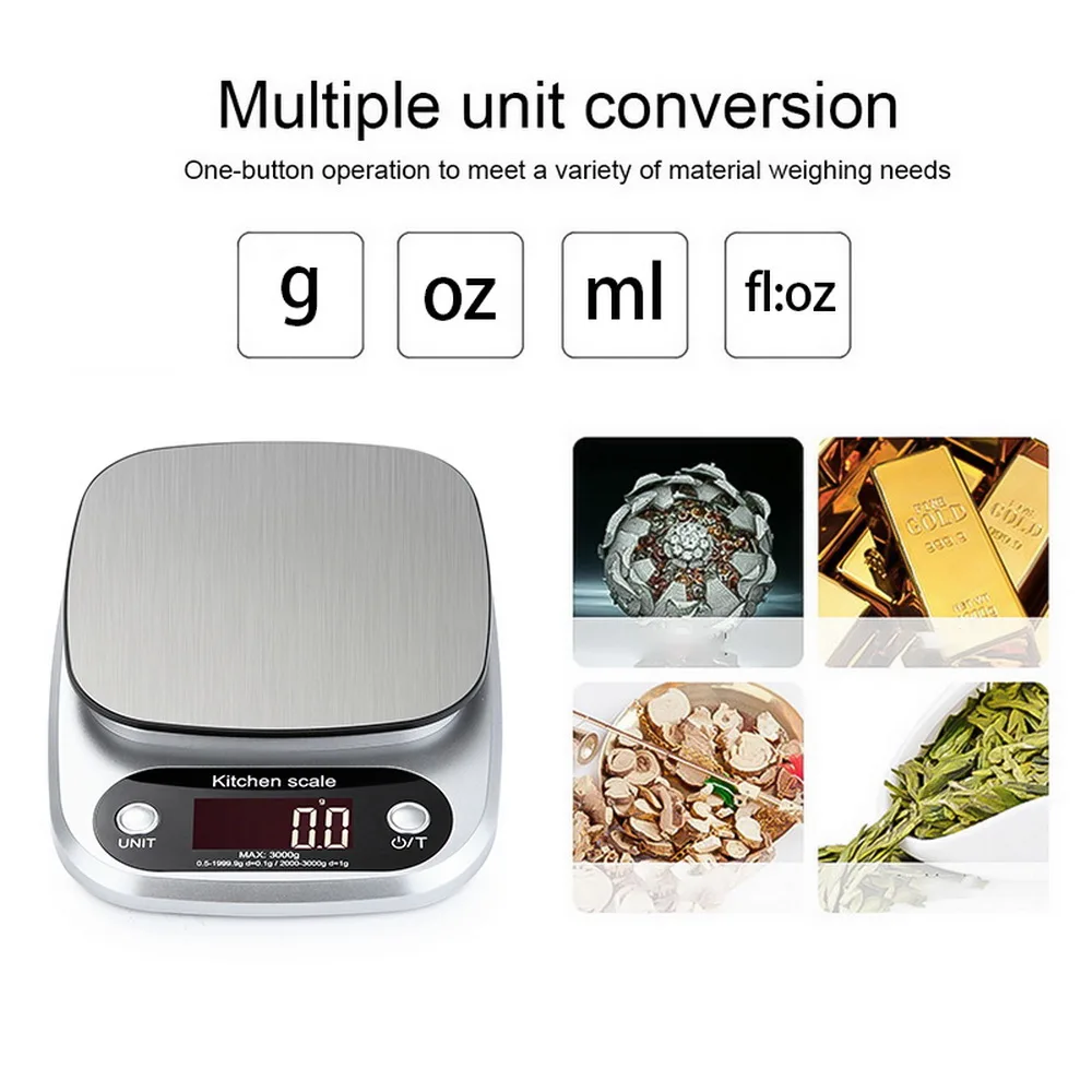 -Функция Zero и tare: кухонные весы могут измерять вес нетто изделий с функцией tare, так что вы можете легко весить вещи.