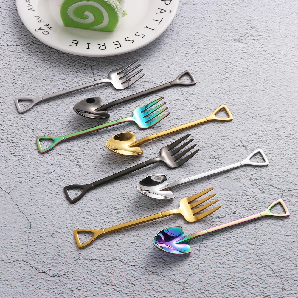 Красочная Ложка Вилка Ручка из нержавеющей стали ложки для питья Лопата Форма супа кофейная/чайная ложка совок кухонные приборы