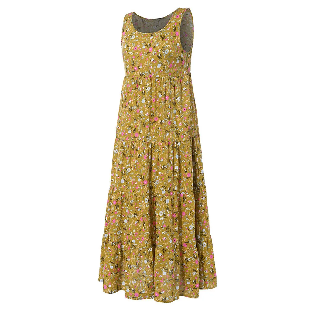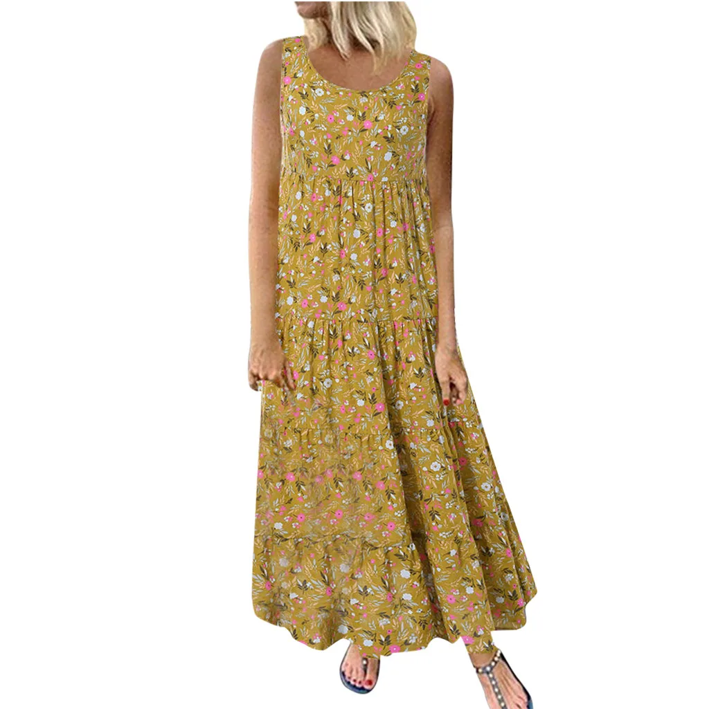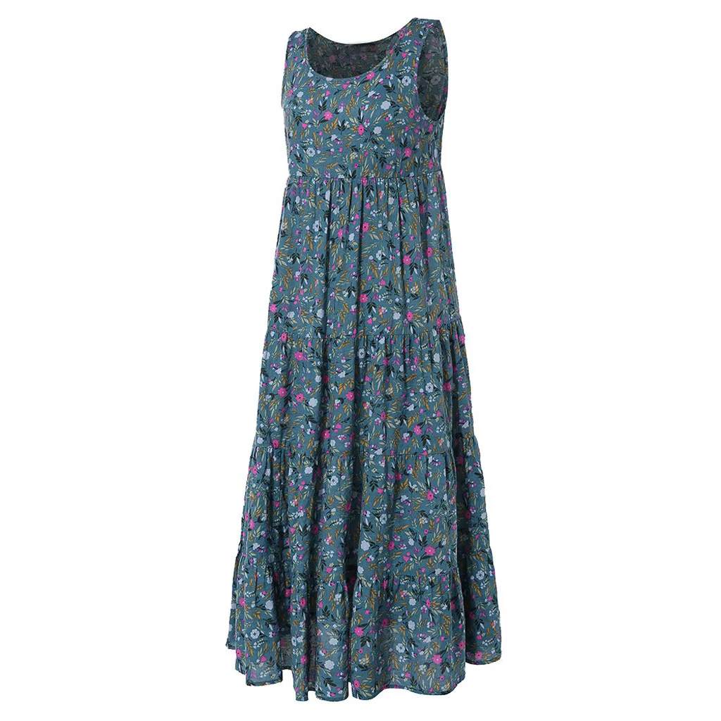 Женское повседневное свободное льняное платье макси без рукавов с цветочным принтом большого размера