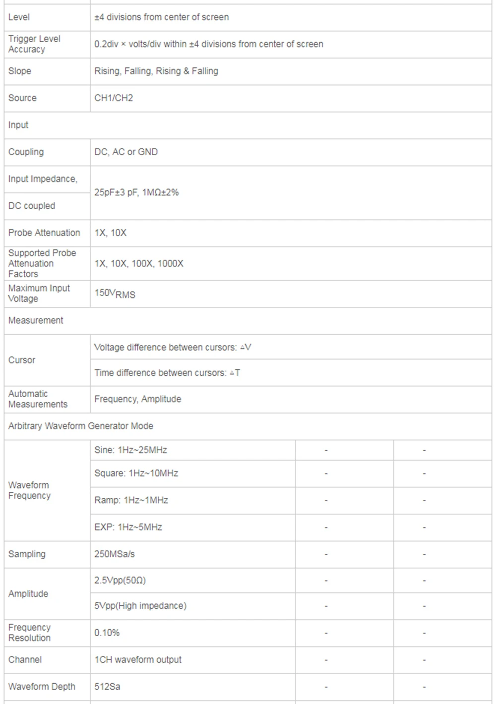 ◆Осциллограф + генератор сигналов + мультиметр: эта многоцелевая станция имеет три универсальных функции измерительного инструмента. Это исходящий правый продукт для инженеров. ◆Интеллектуальное управление зарядкой: его литиевые батареи могут быть перезаряжены byeither высокого current-5V/2A или обычный компьютерный USB интерфейс. Позволяет во время зарядки, во время использования, очень удобно и удобно; ◆ Ультра-низкая мощность: зарядный интерфейс типа C, после каждой перезарядки в течение 2 часов устройство может использоваться непрерывно в течение всего дня или в режиме ожидания более двух месяцев; ◆ Большая емкость литиевой батареи Источник питания: 18650 сменная литиевая батарея, без замены батареи; ◆ Зарядное устройство 5 В/2 А + зарядный кабель типа C: Питание типа C + интерфейс передачи данных, можно поделиться зарядным устройством и кабелем передачи данных на ваш мобильный телефон; ◆AUTO тест на один ключ: магический инструмент и основная функция для тестирования новичка; ◆Малый объем, одна рука держания: 45 градусов конструкция подвески обеспечивает вам рабочую станцию в любом месте в любое время; ◆Одна ключевая страница, быстро сравнить две группы опорных форм + 6 групп хранения сигналов, простой и эффективный; ◆Функция цифрового вольтметра: Автоматическое Измерение частоты и амплитуды, удобное и беззаботное; ◆Функция измерения курсора поддерживает измерение времени и напряжения вручную и точно измеряет требуемые формы волны; ◆ Одно нажатие переключает меню на китайском и английском языках; ◆Цветной ЖК-экран: изысканные и гладкие линии делают формы волны прозрачными и неискаженными при увеличении; Минималистский дизайн клавиатуры упрощает работу, удобен в использовании; ◆Unibody Корпус: приятное на ощупь, благоприятное ударопрочность, отличная термостойкость, легко разбирается; ◆ Функция самокалибровки: без смещения уровня после длительного использования; ◆Универсальная функция мультиметра: напряжение, ток, сопротивление, диод, конденсатор, испытание ВКЛ-ВЫКЛ; ◆Функция генератора сигналов на выходе: синусоидальный, квадратный, треугольный, трапециевидный и другие формы волны; Синус до 25 МГц; ◆Функция видео помощи: сканирование кода на обратной стороне машины, чтобы получить помощь видео курса; ◆ Программное обеспечения для подключения к компьютеру с поддержкой windows7/8/10 32-битными и 64-битными.