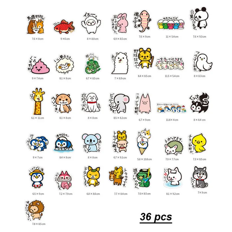 36 шт./компл. 5 ~ 12 см Kawaii Животные наклейки водонепроницаемые ПВХ граффити японские Мультяшные наклейки холодильник кувшин багаж для мобильного украшения