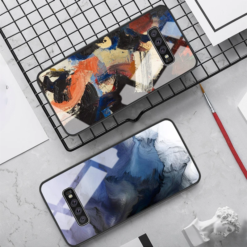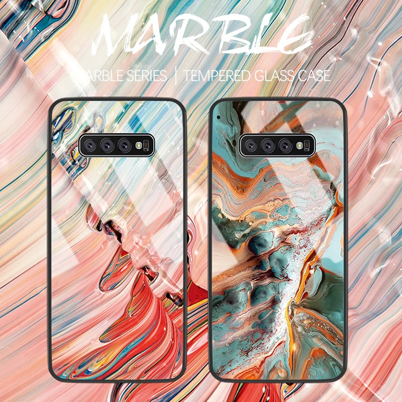 Мраморный чехол для телефона из закаленного стекла для Samsung S20 S20 Plus S20 Ultra S8 S9 S10 S10E Note 8 9 10Plus чехол с масляной росписью