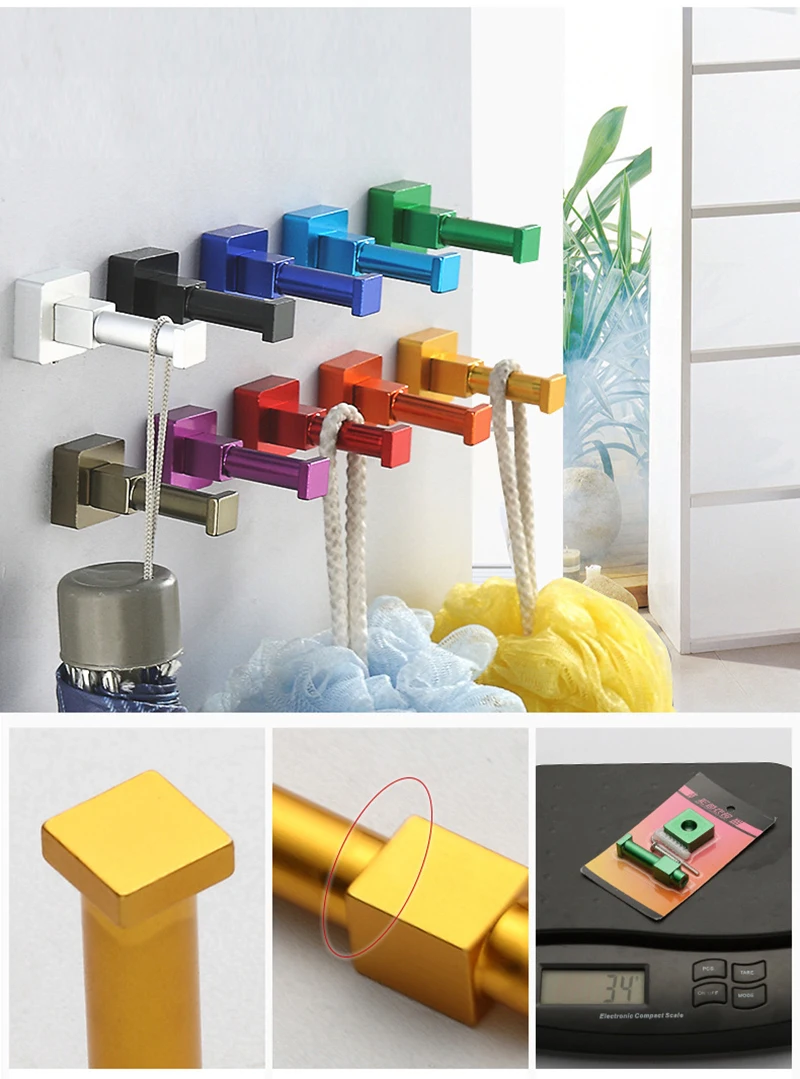 Креативный цветной крючок, алюминиевый многоцветный DIY настенный крюк для полотенца, для ногтей, для ванной, кухни, для одежды, для ключей, вешалка для ключей, сумка, держатель